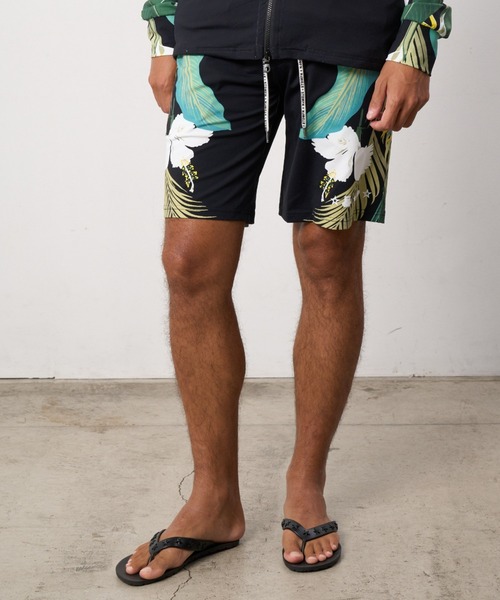 フラワーリーフ柄のオリジナルテキスタイル ストレッチナイロン素材を使用したボードパンツ。