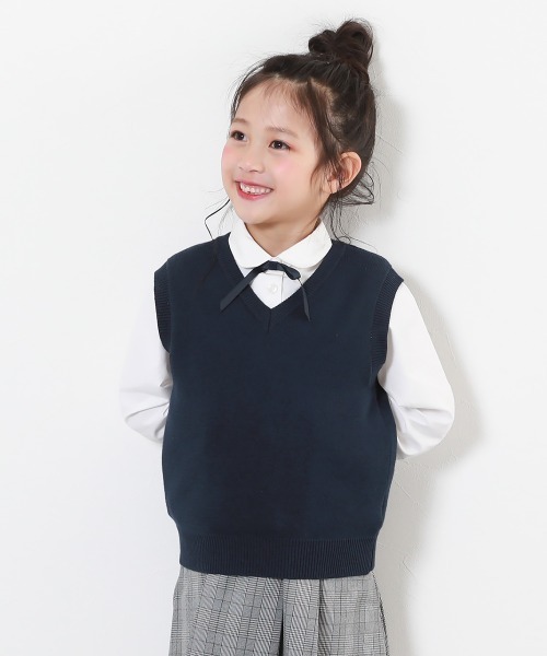 毎日着られる『綿100% 洗える スクールニット Vネック ベスト』ベーシックなデザインのスクール用ベスト。