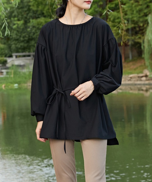 セットのストラップでウエストマークすれば、着こなしのアレンジも楽しめます。