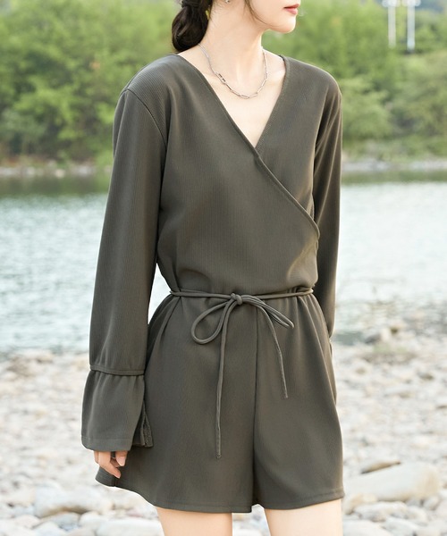 顔まわりがすっきりと見えるVネックに、カシュクール風のデザインを組み合わせることで、洗練された1枚に仕上げました。