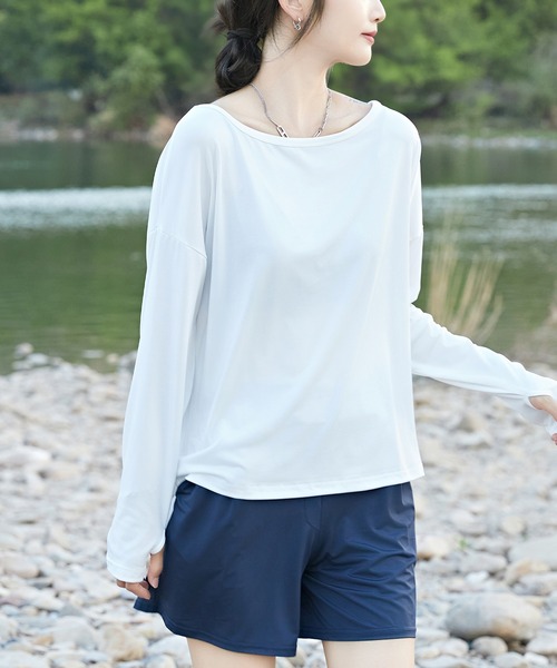 普段着感覚でお使いいただける、プルオーバー×ショートパンツのラッシュガードセット。