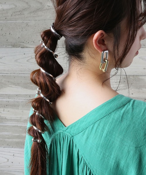 メタリックからーが華やかで目を引くコイル型のヘアフック/ヘアカフです。