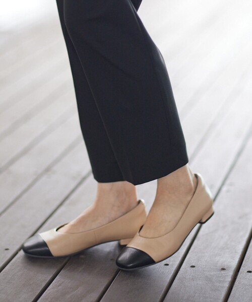 デザイン性のあるフラットパンプスながら落ち着いたカラーリングでおつくりしているので、モードからカジュアル、フェミニンスタイルまで幅広く合わせていただけます。