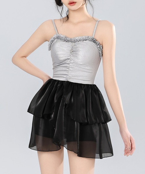 ツヤ感のあるシアーなティアード風スカートで綺麗に隠せる◎