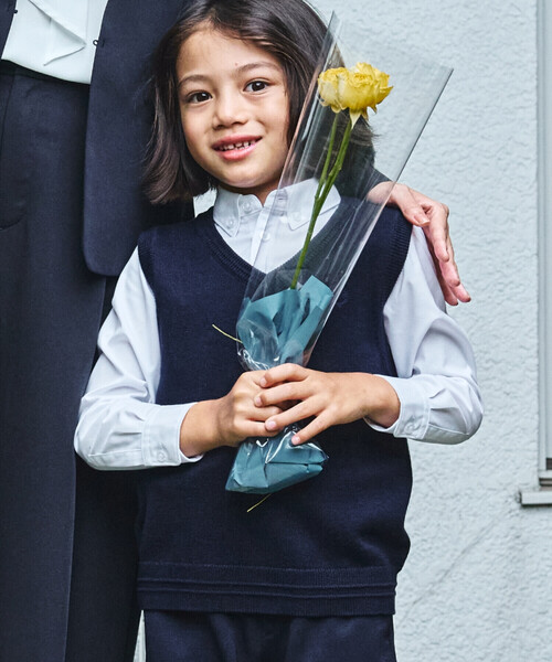 さり気ないアクセントにし、胸のワンポイントも同系色の刺繍にしています。