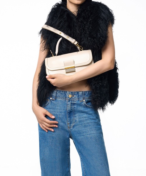 合皮レザーにヴィンテージゴールドのパーツが品良く映える、大人の気分を纏う上品なデザインです。