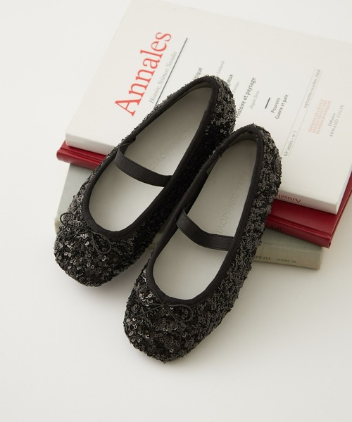 贅沢に散りばめられたスパンコールが目を惹くバレエシューズ。