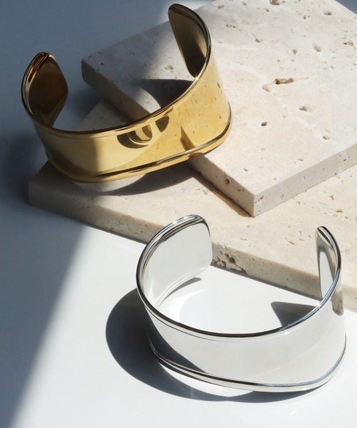 メタリックな質感が美しい、シンプルデザインのバングルです。
