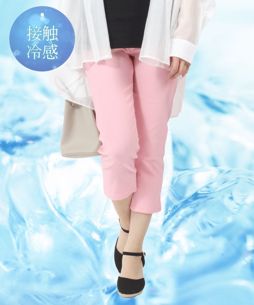 接触冷感 7分丈ストレッチテーパードパンツ/レギパン レディース/カプリパンツ/サブリナパンツ/カラーイージーパンツ