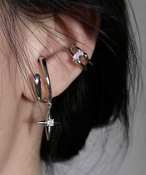 耳の上の方や横の部分に引っ掛けるように装着する、デザインが違うイヤーカフ2点セットです