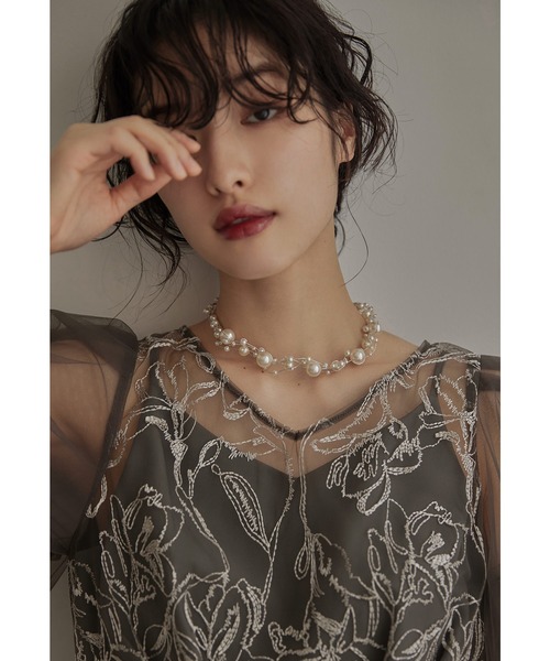 大きめのパールがデコルテラインに華やかな印象を与えてくれます。