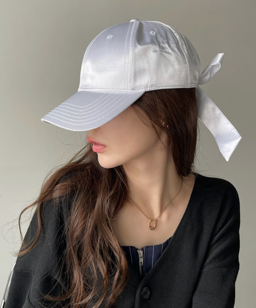後ろ姿がなんともキュートな、リボン付きのサテン生地のベースボールキャップが新登場☆