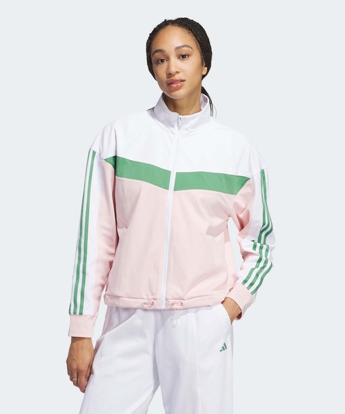 【アディダス公式ショップ】軽量かつ動きに制限がかからない快適なストレッチ性のあるツイストニット素材を使用したトラックジャケット。レトロ感のあるカラーブロックが特徴的なadidasらしい商品。