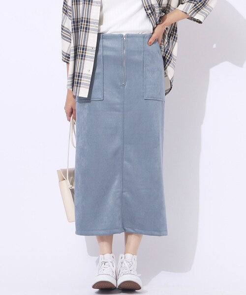 上品できれい見えするスエード素材ながら、カジュアルなコーディネートにも合うベイカーポケットのデザインもポイント。