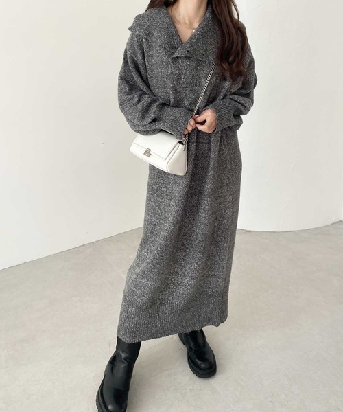 首元のボタンデザインがアクセントのニットワンピース。