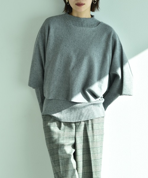 ケープライクなトップスとリブニットがセットになった旬なアイテム。セットで着るとオシャレ上級者なレイヤードコーデが完成します。リブニットはシンプルなデザインなのでジャケットインなどに合わせてお仕事にも活躍間違いなし◎ケープライクなトップスはコンパクトな丈感でお手持ちのニットやワンピースはもちろん、ボリューム感のあるボトムとも相性抜群。コーディネートの幅が広がるセットアイテムです。