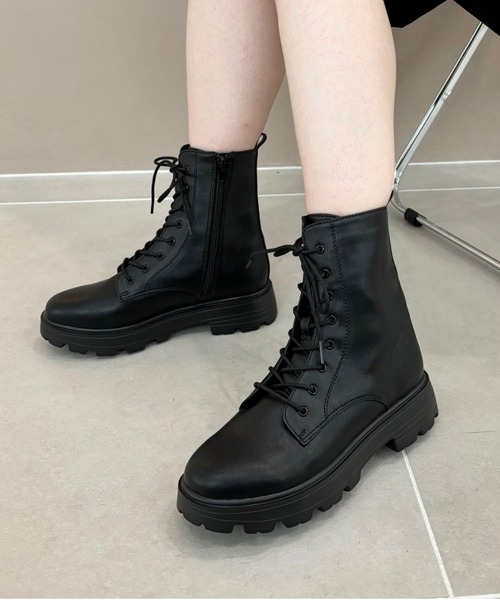 定番のレースアップブーツは飽きのこないシンプルなデザインに仕上げた1足。