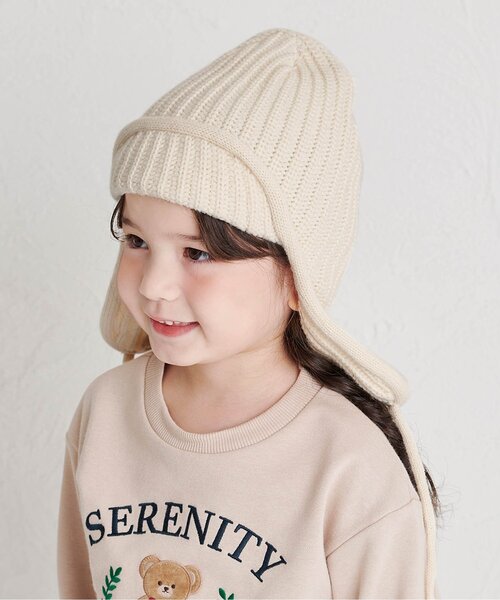 耳当てを上げて頭頂部で紐を結ぶとお洒落さん