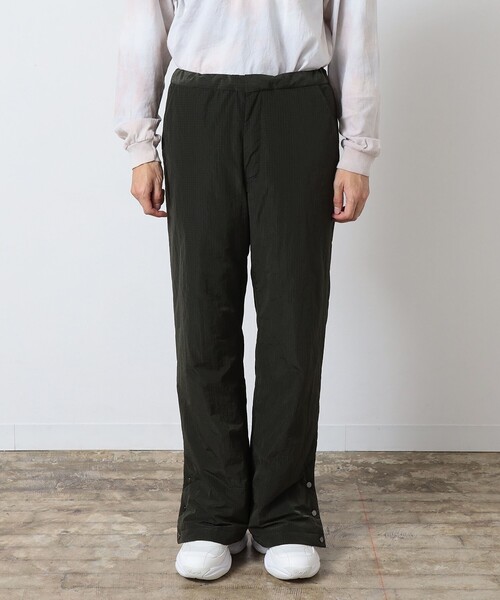 美シルエットなセミワイドパンツ両裾脇に深いスリットボタンが配されたセミワイドダウンパンツ。適度なハリ、ナチュラルなシワ感をもたせた、薄すぎない0.5ナイロンリップストップを表地に。裏地には、850FLPのTAIONダウンを充填した柔らかいナイロンタフタを使用。〈TAION(タイオン)〉のプロダクトを象徴する軽く、暖かいデザインが魅力の1本です。