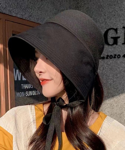 • デザイン: エレガントなクロッシュハットスタイルに、顎下で結べる紐が付いており、風の強い日でもしっかり固定できます。サイドにはアクセントとして金属の装飾が付いています。