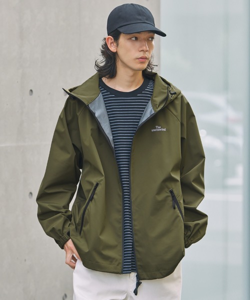 3層構造の3レイヤー機能素材を採用。中間層のPU透湿フィルムにより洋服内は蒸れにくく、さらに生地の表面は防水層のため、水は弾き、蒸れは軽減するという機能を両立しました。両ポケットとフロントジップには防水性を高めた止水ジップを採用しているので、隙間からの水の入り込みも心配ありません。また、ポケットは500mlのペットボトルも入るほど大容量なので、これ一枚だけ羽織れば手ぶらで出かけられるのも魅力です。袖はマジックテープとなっておりサイズ調節可能で、裾のドローコードをキュッと絞れば丸みのあるシルエットを作り出し、こなれ感のある着こなしを実現します。