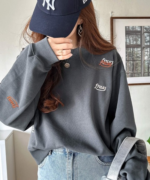 トレンドのランダム刺繍を施したこなれ感のある短丈のスウェット。