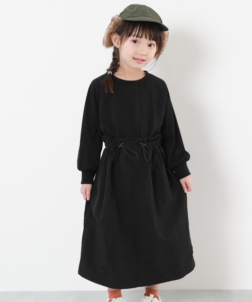 トレンド感のある『ウエストドロスト ナイロンドッキング ワンピース』ナイロンスカートをドッキングしたおしゃれなワンピース。