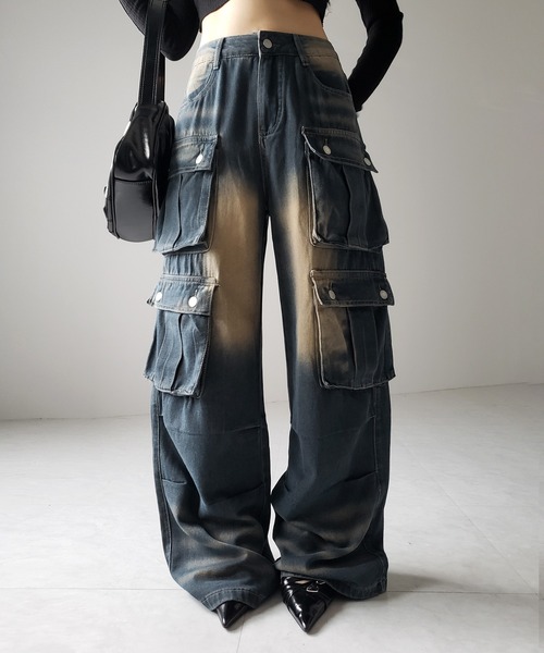 \Y2Kスタイルを叶えるヴィンテージ加工グラデーションカーゴデニム/