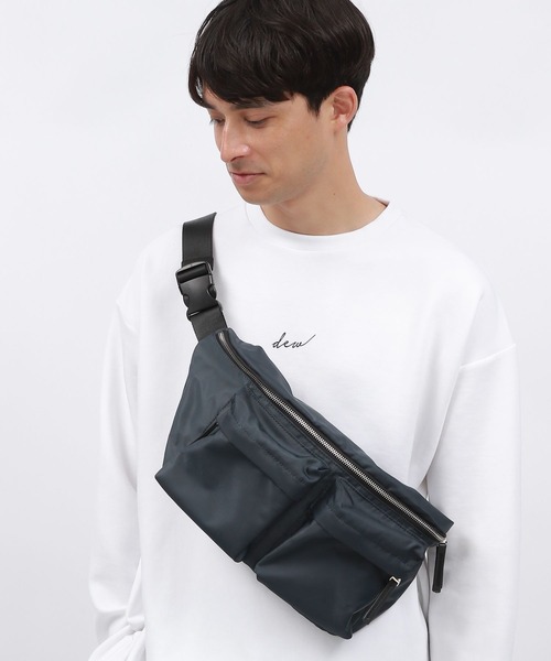 フロントに配したダブルポケットがポイントのボディバッグ。