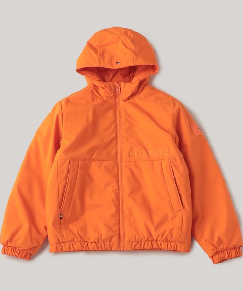 ・ソリッドカラーでシンプルにデザインされており、フードにフラッグロゴ、左胸にHILFIGERロゴがあしらわれています。