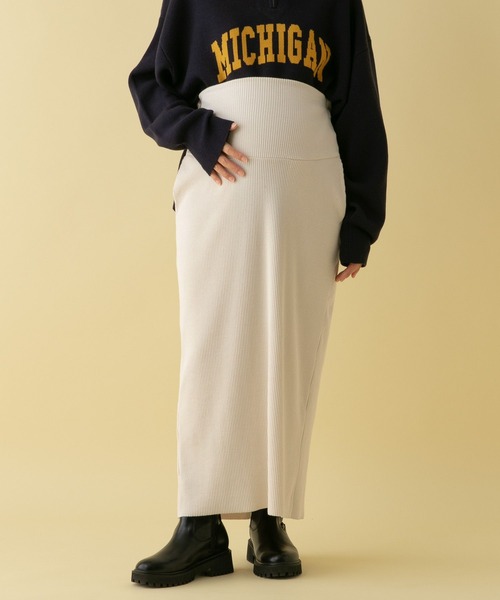 お腹がすっぽりと包まれているタイプで、お腹周りがすっきりし綺麗なシルエットのスカートです。ウエストにはアジャスターゴムが付いており、お腹の大きさに応じて調節ができます!