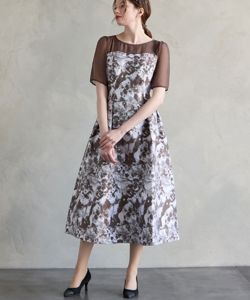 ボタニカル柄のジャカードが目を惹くパーティードレス。