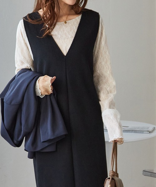 ・インナー選びもしやすい深めのVネックが、女性らしさを後押ししてくれる可愛いデザイン。