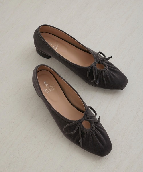 ・秋冬らしい暖かみのあるベロア素材のパンプス。
