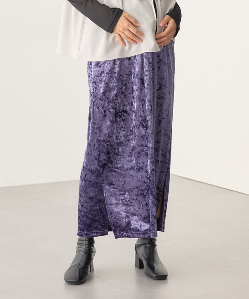 華やかで格調高い光沢を持つクラッシュベロアを使用したスカート。