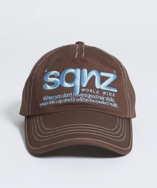 フロントには“sqnz”のロゴ刺繍が施され、コーデのアクセントになるオリジナルキャップ。