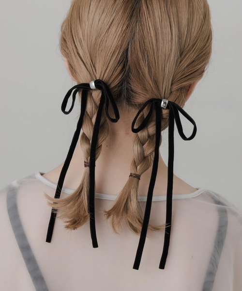 シーズンムードのあるベロア生地で仕立てたリボンがアクセントの効いたヘアスタイルを完成させるヘアーカフのセット。