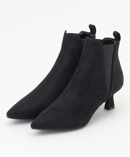 ■デザインポインテッドトゥが女性らしいサイドゴアブーティーは美しいシルエットで、きれいめな印象に。ショート丈なのでどんなボトムとも合わせやすく、サイドゴア仕様なので着脱が簡単。フェイクスエードを使用しており、秋冬コーデに合わせやすい商品です。