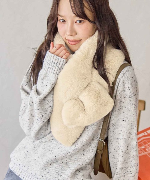まるでリアルファーのようなふわふわで上質なファー素材で仕立てたティペット。