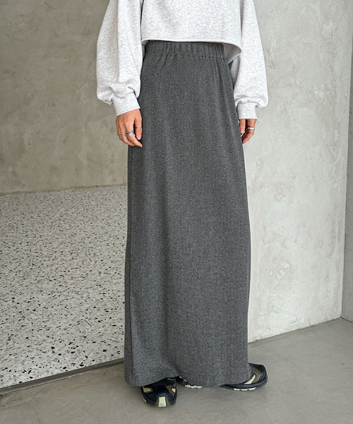 伸縮性抜群なゴム編み仕様のカットソーロングスカート◎
