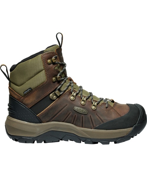 しなやかで耐久性に優れたウォータープルーフヌバックレザーを使用したKEENウィンタートレッキングブーツのトップモデル。靴底からの冷気を遮断し、暖められた空気を溜めて足室全体を保温するヒートトラポレーターを採用、スピーディーな歩行にも対応するアウトソールはアスファルトと雪原の双方で高い防滑性を発揮。