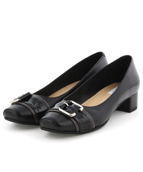 アッパーのバックルモチーフがアクセントになったパンプス。