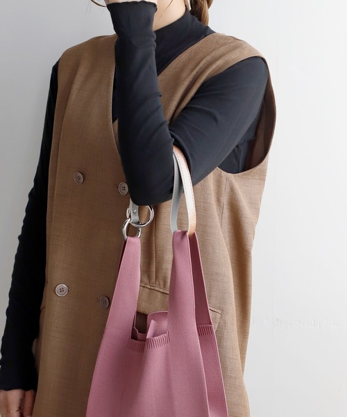 しっとりとしたレザー調の質感がカジュアルすぎず、ニットバッグをもっと上品で大人な印象に仕上げる逸品です。