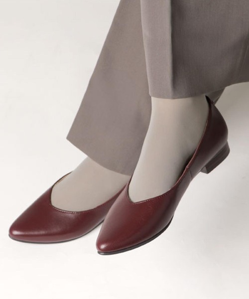 やわらかなポインテッドトウと履き口のVラインがすっきりとした印象に。