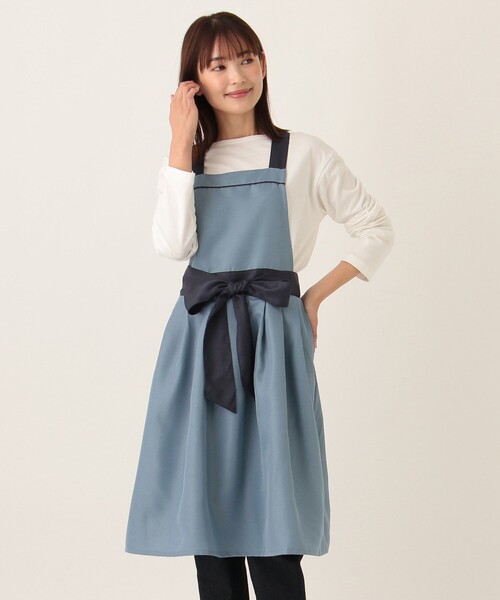 フロントで結んだ大きなリボンが愛らしく、メリハリのあるシルエットを叶える1枚。いつもの何気ないお料理シーンを華やかに演出してくれます。シンプルにまとめているので、お手持ちのお洋服に合わせやすいのもうれしいところ。カラーはお好みで選べる3色をご用意しました。生地は速乾性が高く、しわになりにくいポリエステル素材です。
