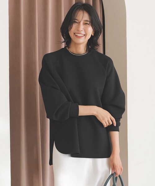 スタイルアップして着られる深めのサイドスリット、着脱のしやすさと後ろ姿にアクセントを加える後ろジップがポイント。構築的なフォルムも魅力で、ボリューム感あるオーバーシルエットのカットソーは1枚で決まる優れものです。