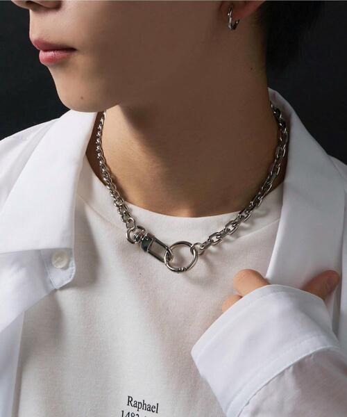 シンプルなシルバーネックレスでありながらカラビナを組み合わせてるのでコーディネートのアクセントになること間違いなし!