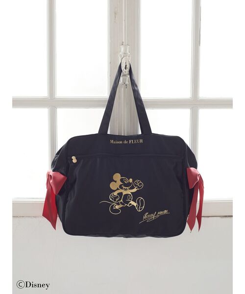 Maison de FLEURの大人気アイテム、キャリーオンバッグに「ミッキー&フレンズ」のアートを箔プリントで表現したスペシャルなアイテムが登場!今にも歩き出しそうな「ミッキーマウス」と、沿えられたサインのアートが華やかなキャリーオンバッグ。