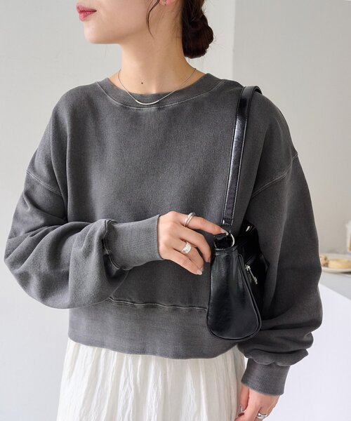 DISCOAT ONLINE LIMITED ITEMコーデの幅が広がるショートスウェット・シンプルなスウェットをショート丈にして、カジュアルながら女性らしい着こなしが可能