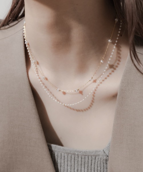 デイリーコーデに取り入れてもスッとなじむミニサイズのパールで仕立てたショートネックレスの2セット。